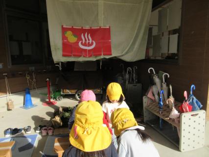 今日は冬至です。地域の方からいただいた柚を子どもたちと一緒に絞って柚ジュースを作りました。甘味はメイプルシロップを入れています。 そして、外では東光温泉のオープンです。あったかいお湯の中に柚を入れて足湯を楽しみました。