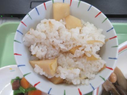 子ども達で皮むきをして竹の子ごはん、こごみは天ぷらにしていただきました。本当に春の恵はありがたいです。 4/15 今日はうきうきランチの日