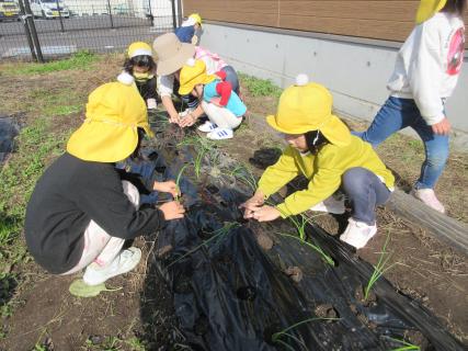 先日、保育園のお芋堀りもしました。数は少なかったですがりっぱなお芋が収穫出来て子どもたちは大喜びでした。