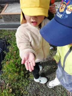 さて、気持ちのいい天気の中、園庭や散歩先で見つけた物を「見て見て」と手のひらにのせてほほえむ子ども達。ふんわりと丸めた手の中から、春のときめきがあふれています。