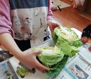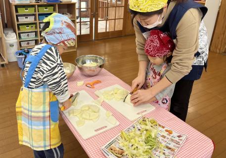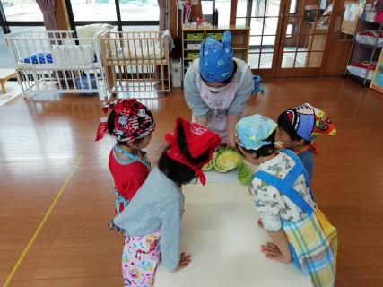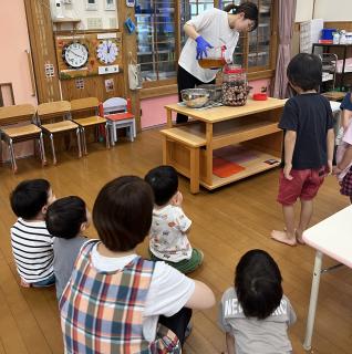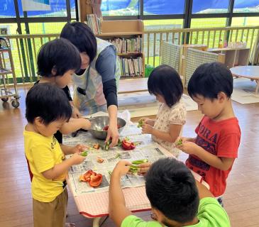 7月はJAの方が来られ、一緒に愛菜カレーを作っていただきました。おいしい野菜、おいしいお米、おいしい肉。心もお腹もいっぱいになりました。毎月あるといいねと先生達がつぶやいていました。笑