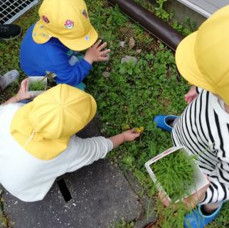 今日も一日がスタートしました。ビオトープのオタマジャクシやカエルにも、畑のダンゴムシにも命がある事を先生達が教えてくれています。さて、5月はたくさんの旬の味をいただきました。山菜摘みに行かせていただいたり、いちごやそら豆をたくさんいただきました。
